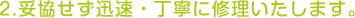 「お客様に言われたところだけ修理する」、これは修理業者としてはもちろんのことですが、たとえばお客様が気付かないところでの不具合や、今後不具合の起きる可能性、もしくはさらにパソコンが快適に使えるようになるご提案など、常に「気くばり」をもって業務に当たるよう心がけております。「修理したけど、またなんか調子悪い」といったケースを避け、お客様の愛着あるパソコンを末永く使っていただけるよう、「最善」のご提案をいたします。